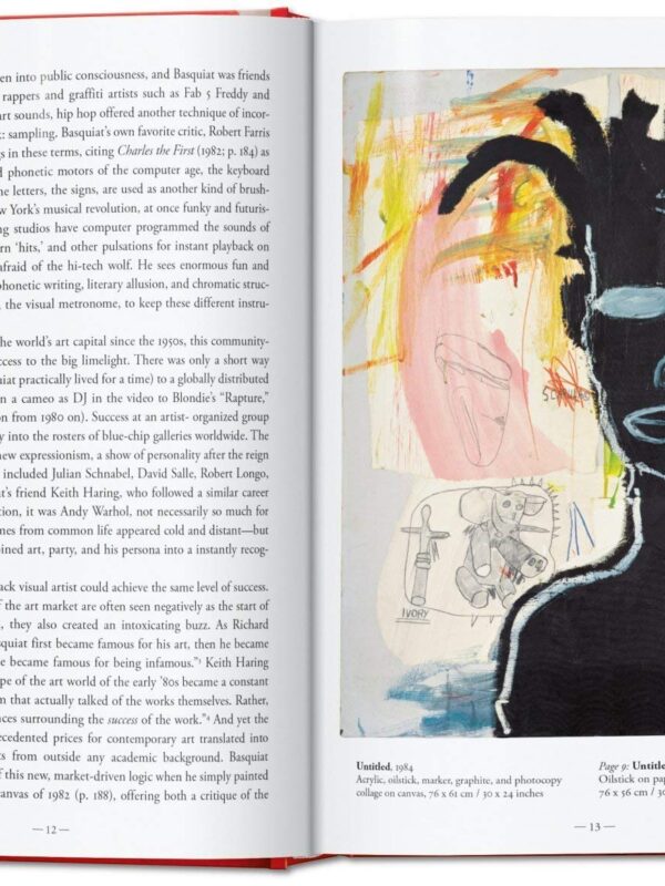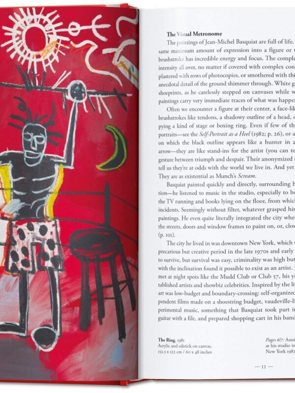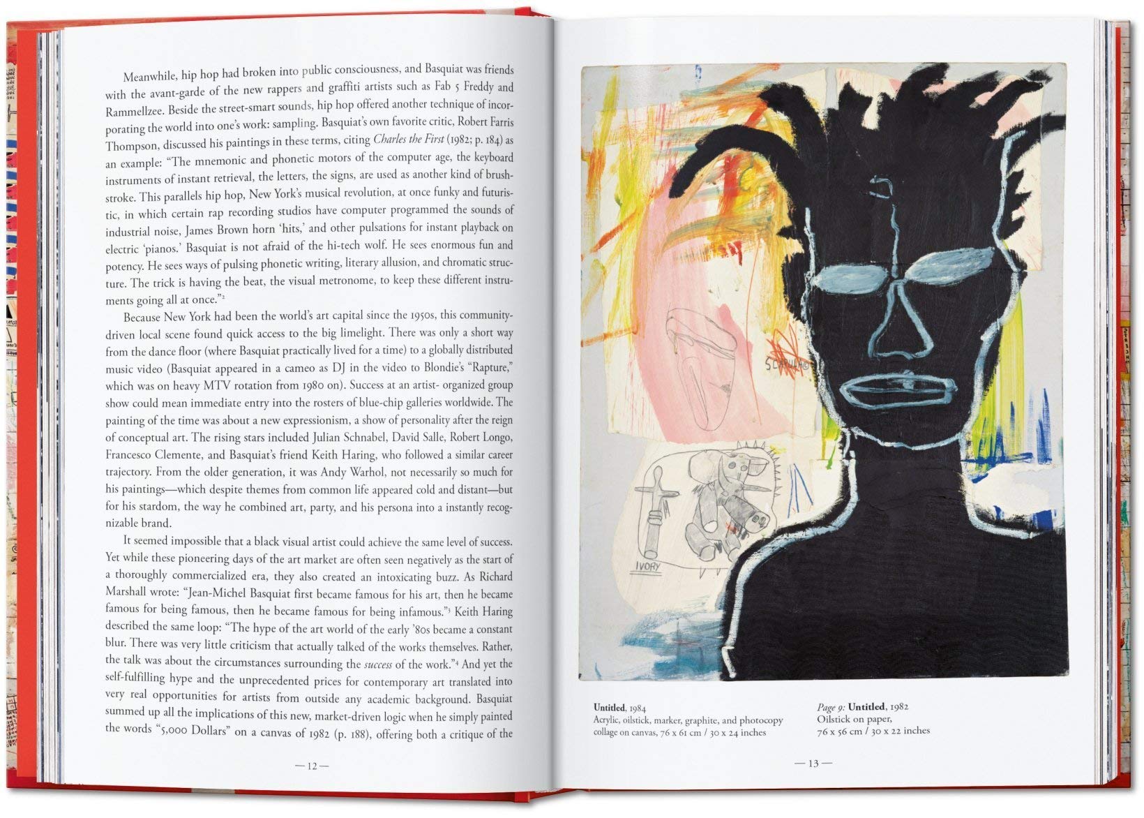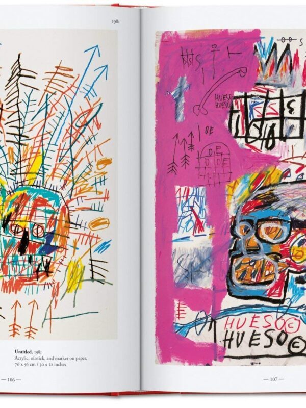 Publicado originalmente en edición XXL, este acercamiento inédito al arte de Basquiat está disponible ahora en un volumen compacto y accesible para celebrar el 40 aniversario de TASCHEN. A través de reproducciones impecables de sus pinturas, dibujos y esbozos más destacados podrá admirar al detalle los complejos signos y crípticos garabatos del artista y profundizar en su mundo gracias a una introducción del editor Hans Werner Holzwarth y un ensayo sobre sus temáticas y evolución creativa firmado por la conservadora e historiadora de arte Eleanor Nairne. Organizados por años y profusamente ilustrados, los capítulos recorren la vida de Basquiat con citas del propio artista y reseñas que aportan al lector tanto una perspectiva personal como contexto histórico.