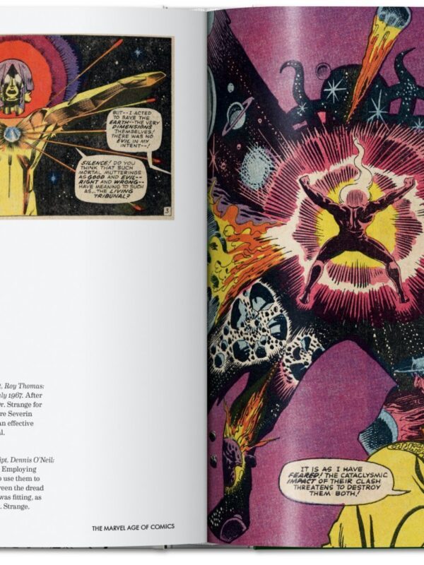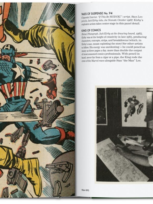 Detrás de todo esto encontramos a los extraordinarios arquitectos de Marvel cuyos nombres nos resultan casi tan familiares como los de los mortales (¡e inmortales!) a los que dieron vida: Stan “The Man” Lee, Jack “King” Kirby y Steve Ditko, junto con otras grandes figuras como John Romita, John Buscema, Marie Severin y Jim Steranko, entre muchos otros. El resultado es un tesoro escondido, una joya para la biblioteca de cualquier amante de los cómics, rebosante de la innovación y la energía de una era invencible tanto para Marvel como para sus personajes heroicos.
