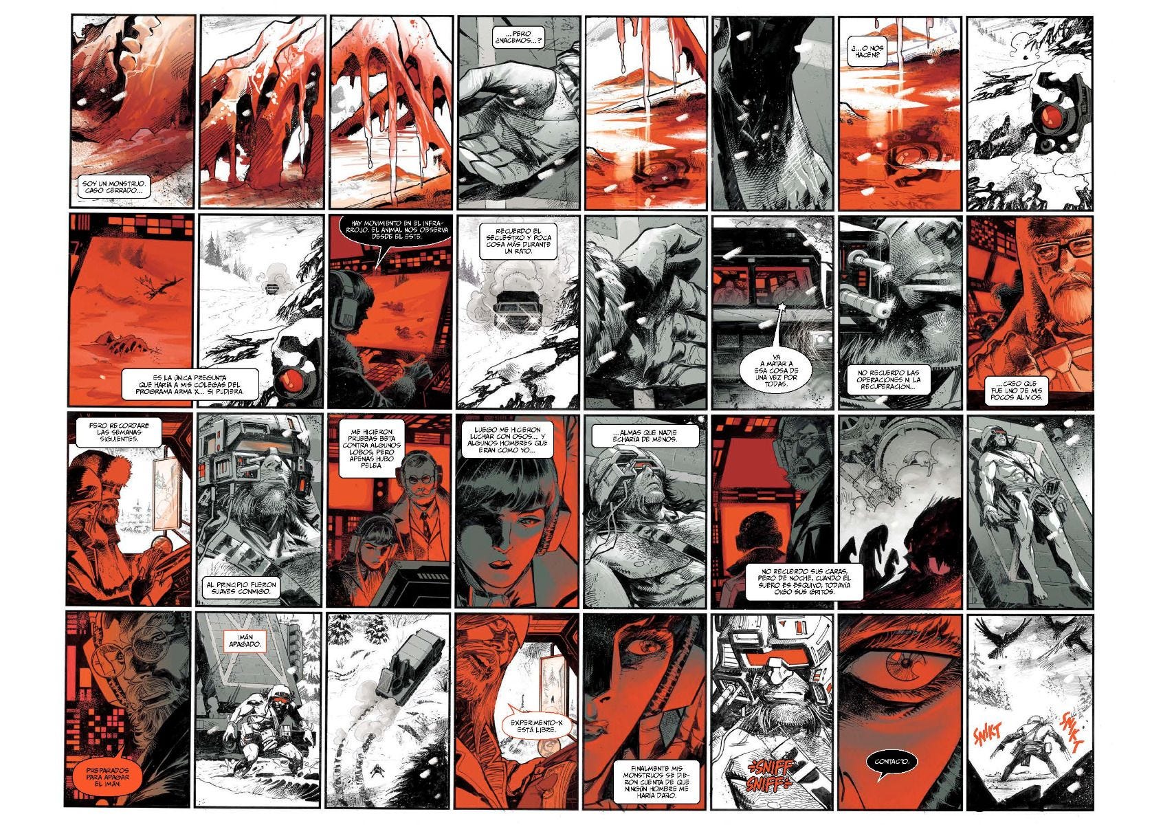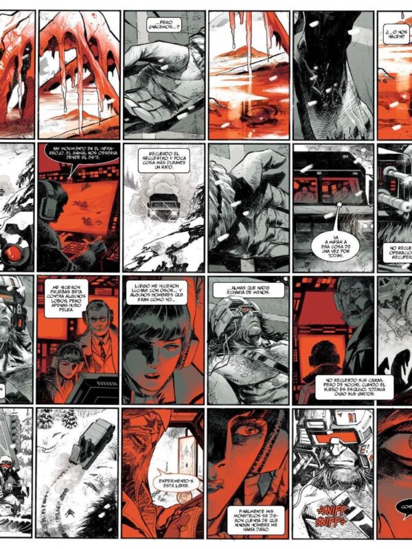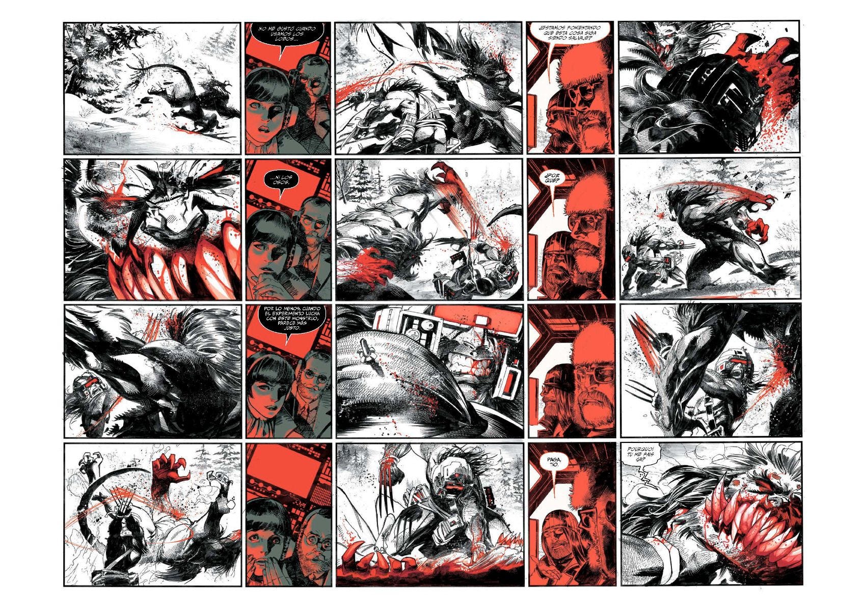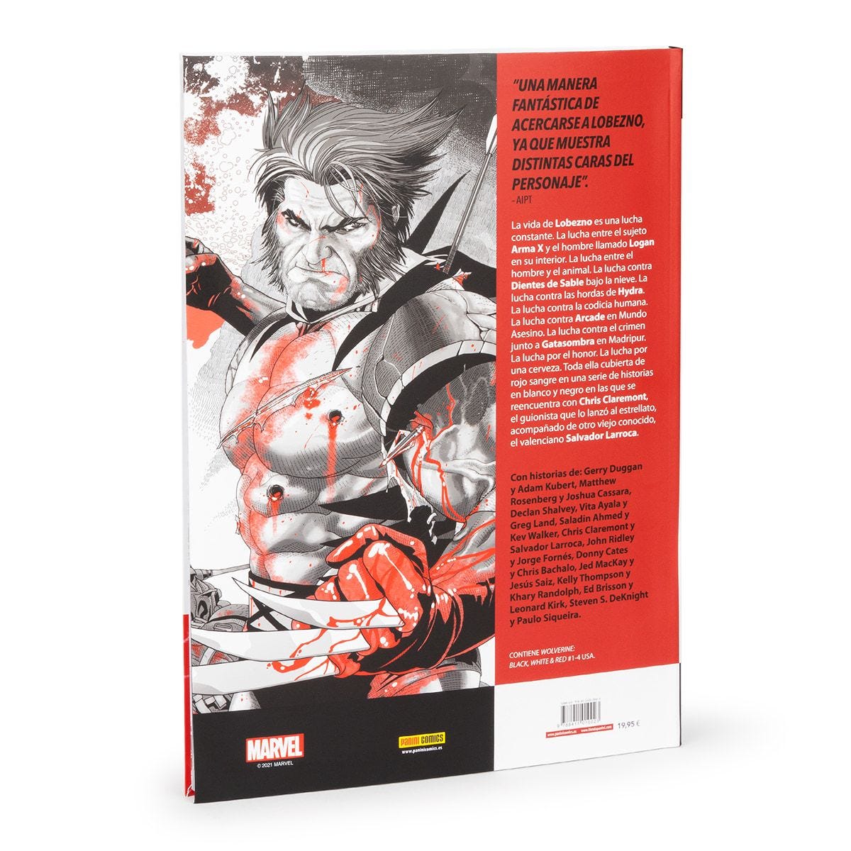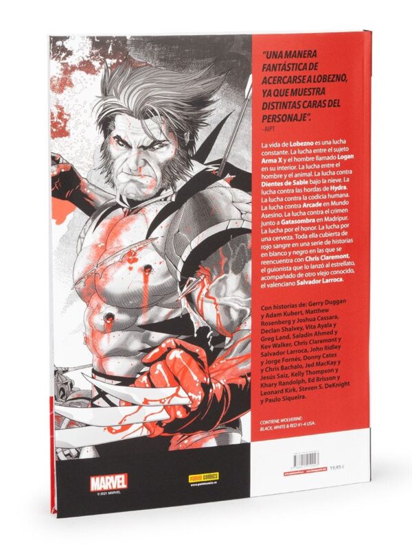 Algunos de los mejores autores de Marvel se reúnen para un recopilatorio diferente de aventuras protagonizadas por Lobezno. Cada una de estas historias está creada en blanco y negro, pero incorpora un color: el rojo. Y el rojo es el color de la sangre.