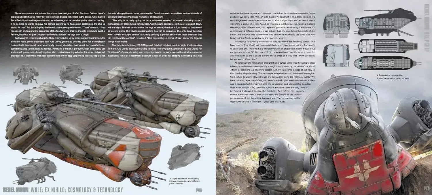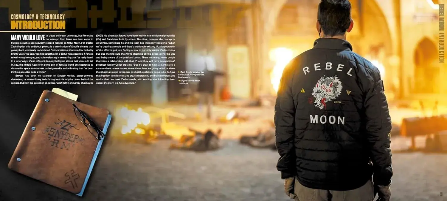 Rebel Moon: Wolf: Ex Nihilo: Cosmology & Technology goes behind the scenes of these much-anticipated films to explore the planets, ships and technology of the galaxy. Bursting with exclusive on-set photography, concept art, storyboards by Zack Snyder, and more, accompanied by cast and crew interviews, the book takes an in-depth look at the making of the films.