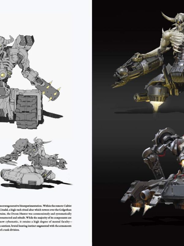 An oversized, full-color hardcover art book containing concept art and commentary from the development of DOOM Eternal, the next entry in the iconic first-person shooter series.